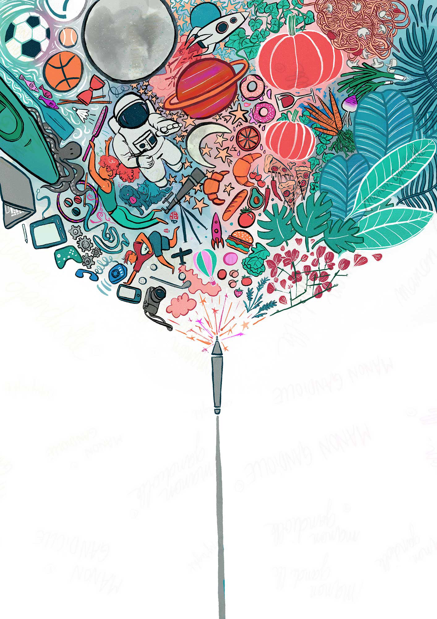 Illustration exploring the idea of creativity and the process behind it.